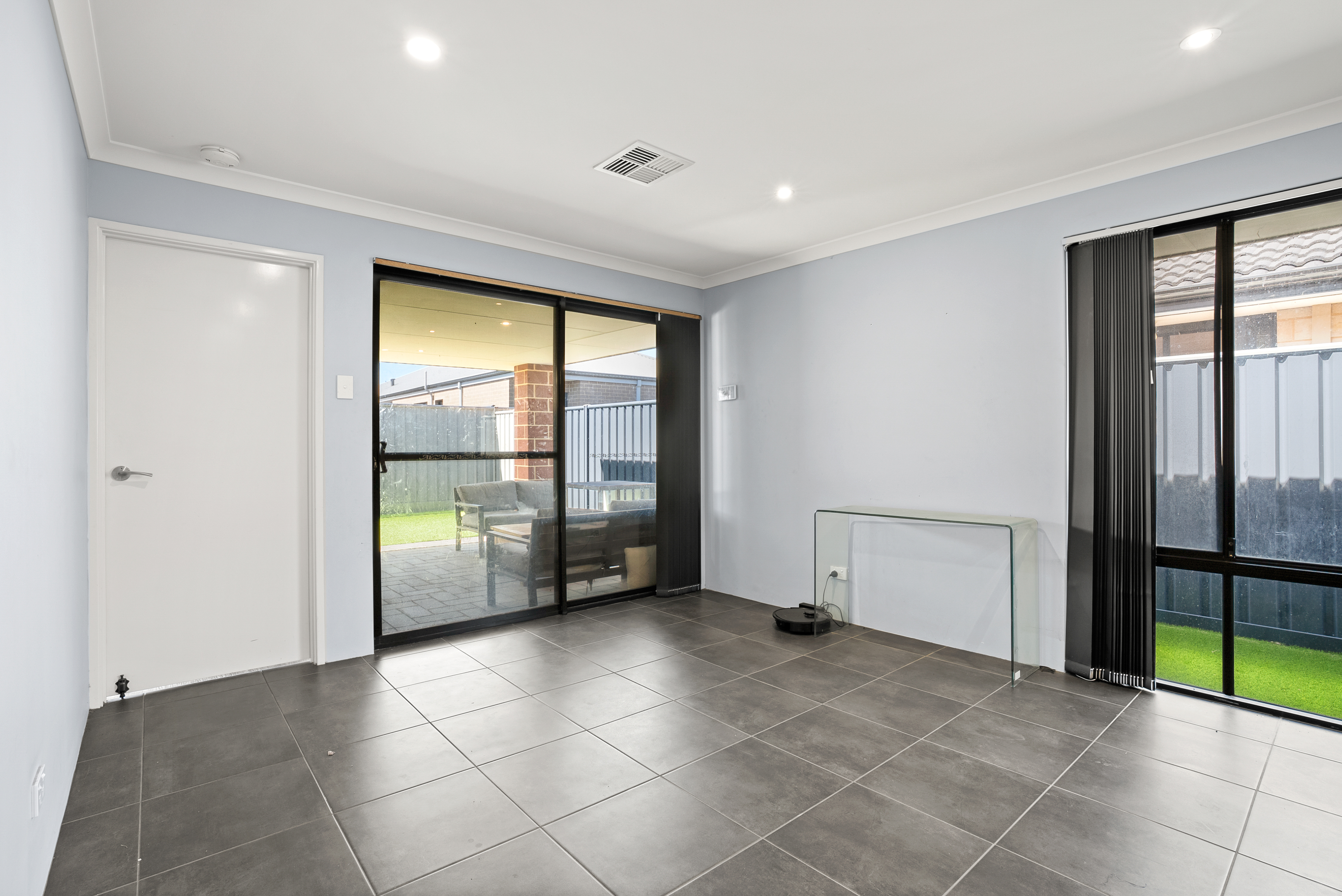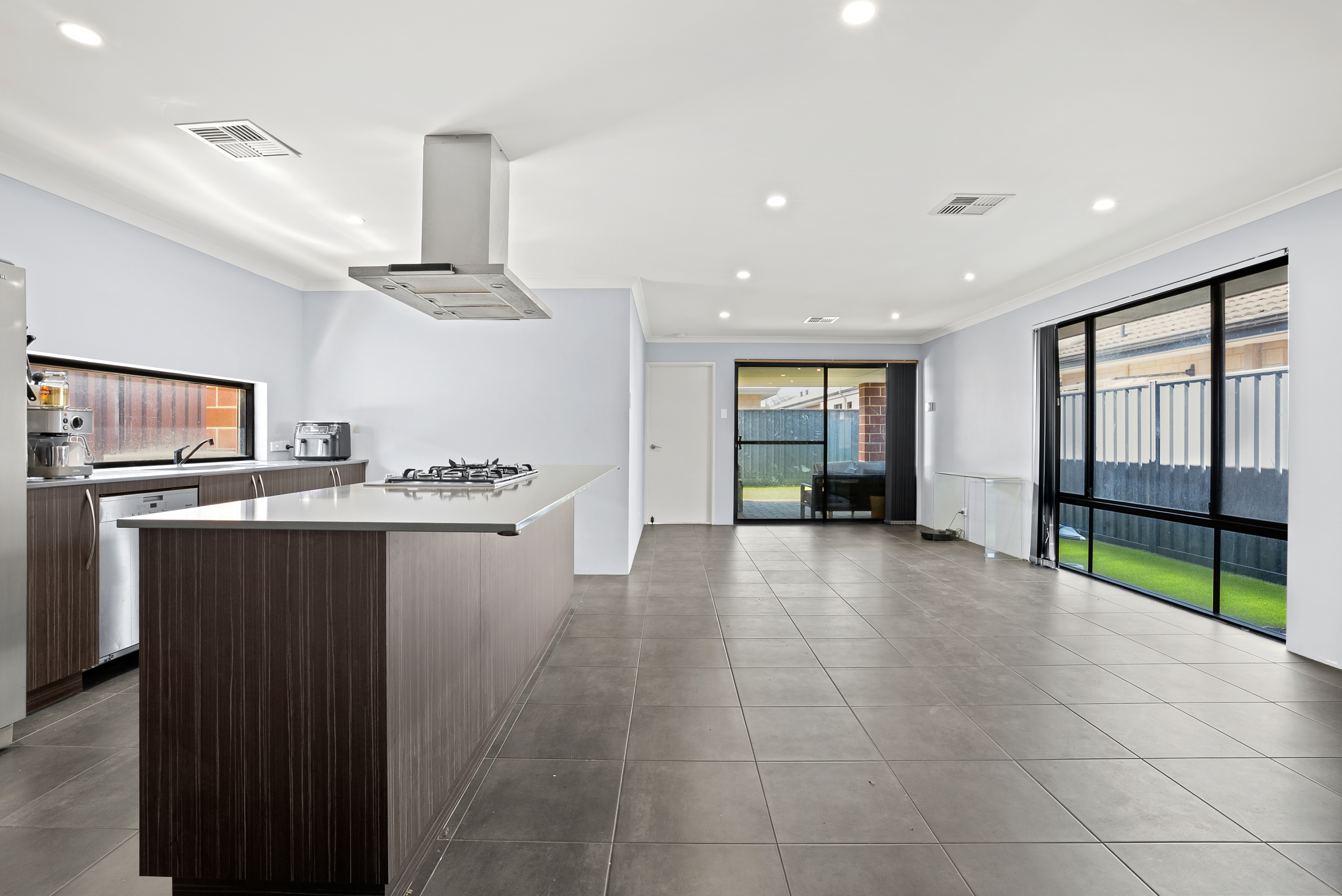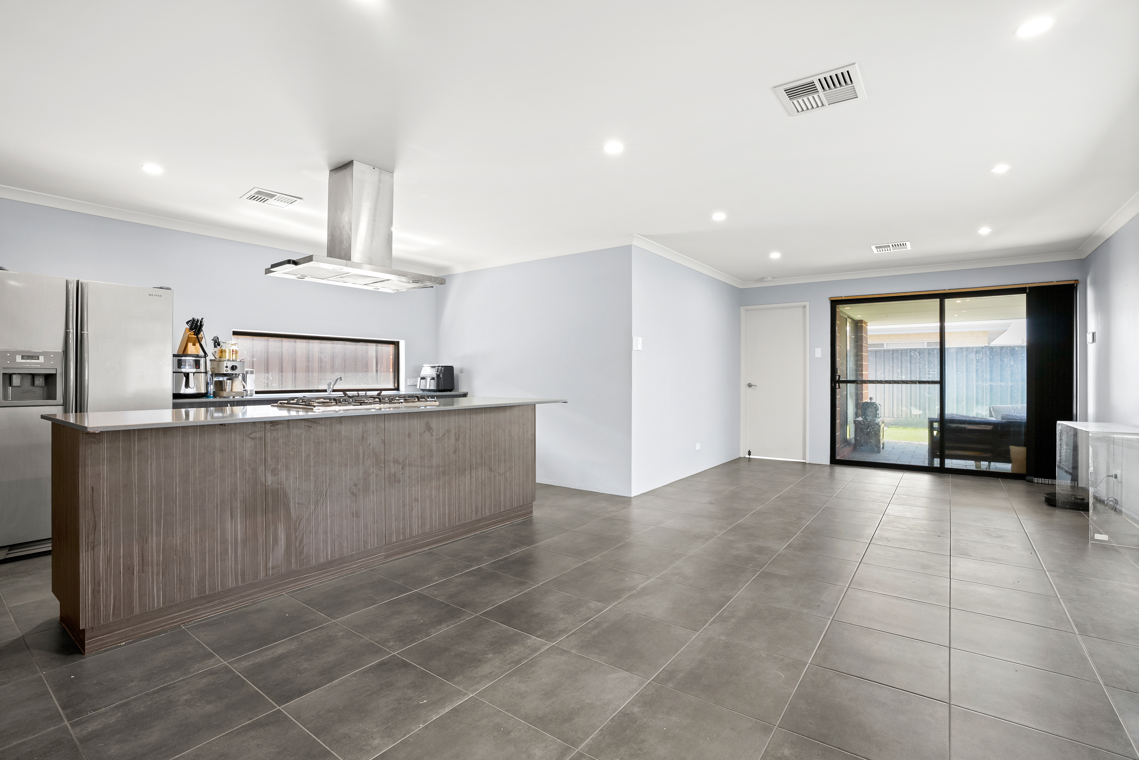 • Open-plan living with light-filled lounge and dining area featuring large grey tiles