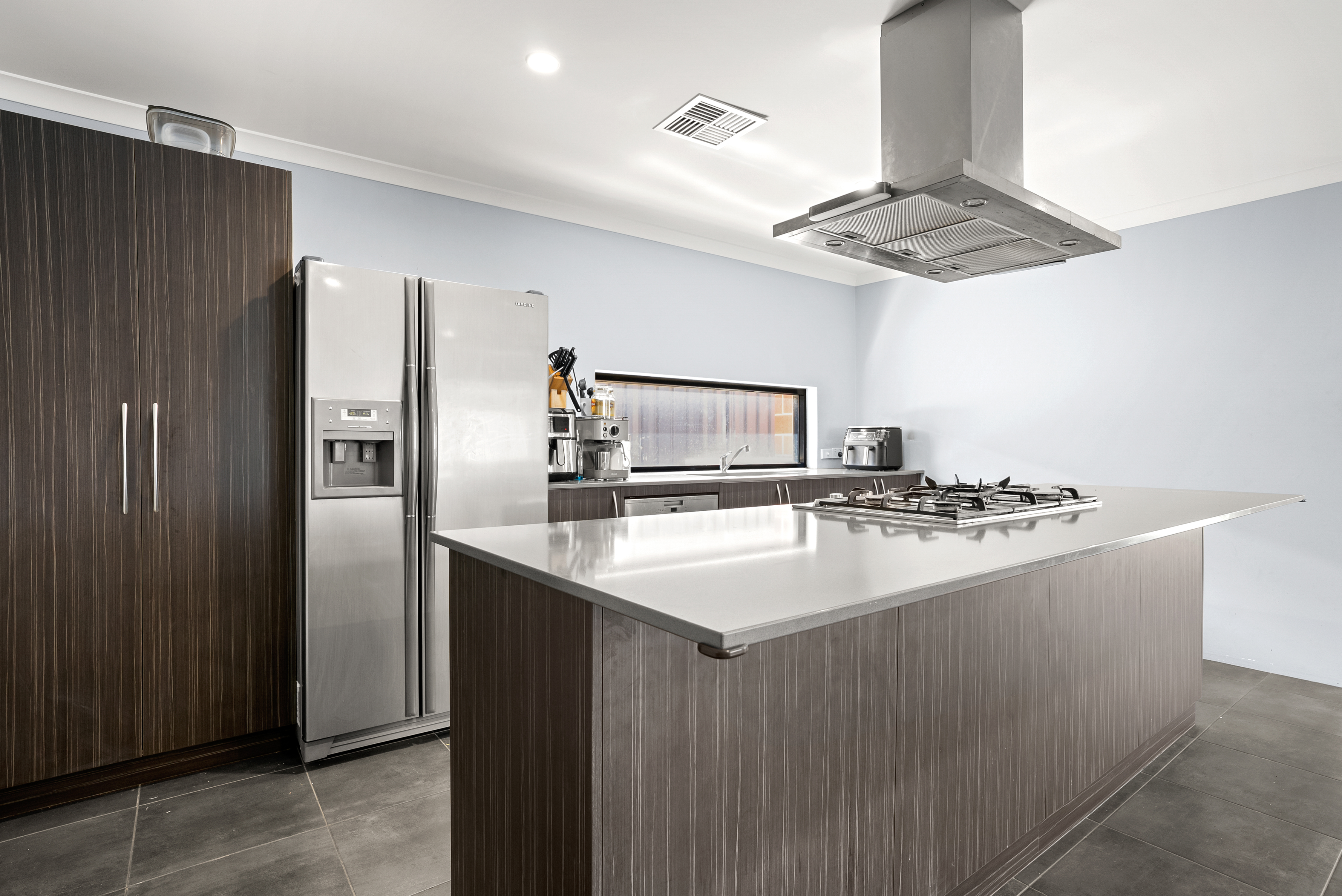 • Modern kitchen with stainless appliances, gas connection and large central island bench