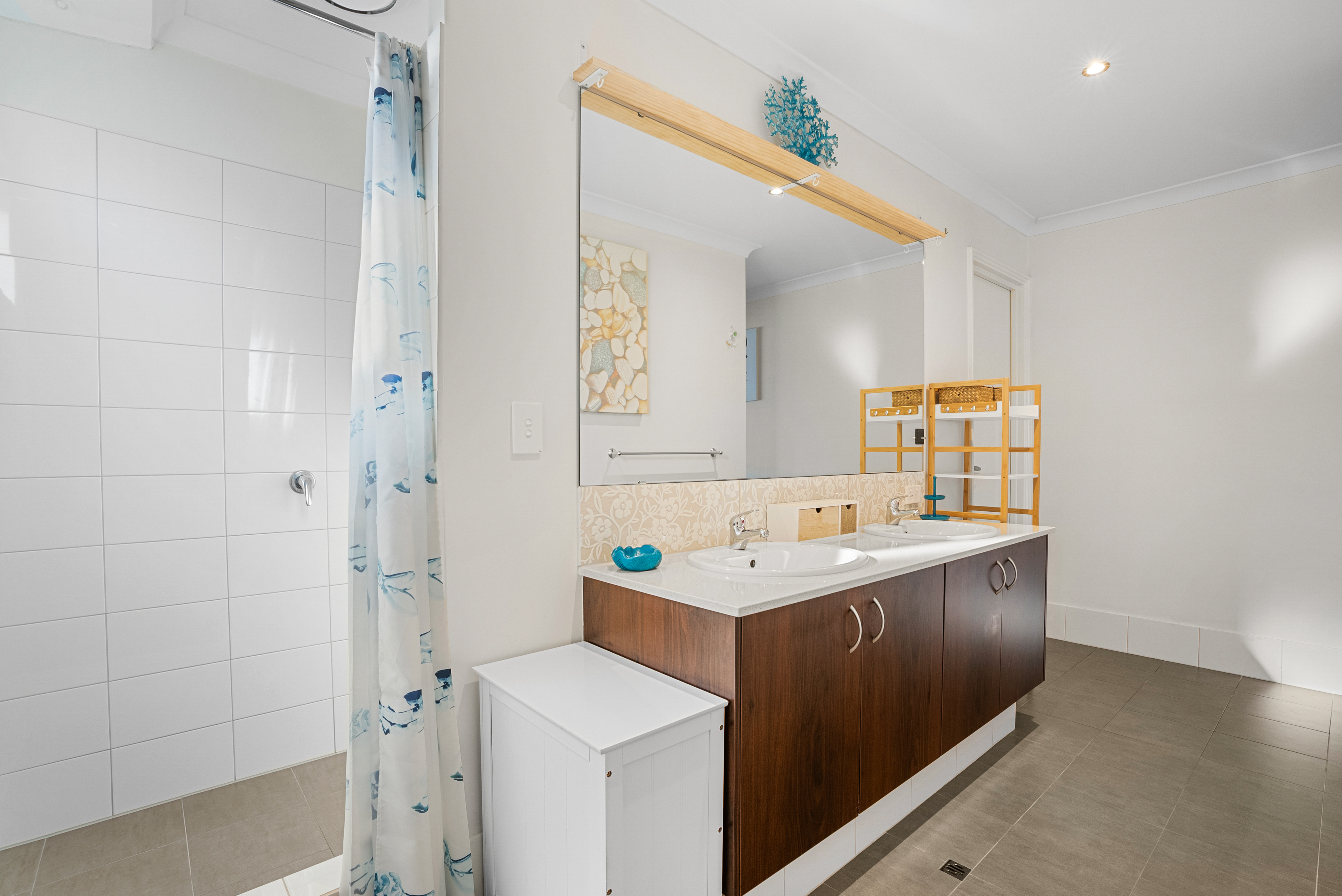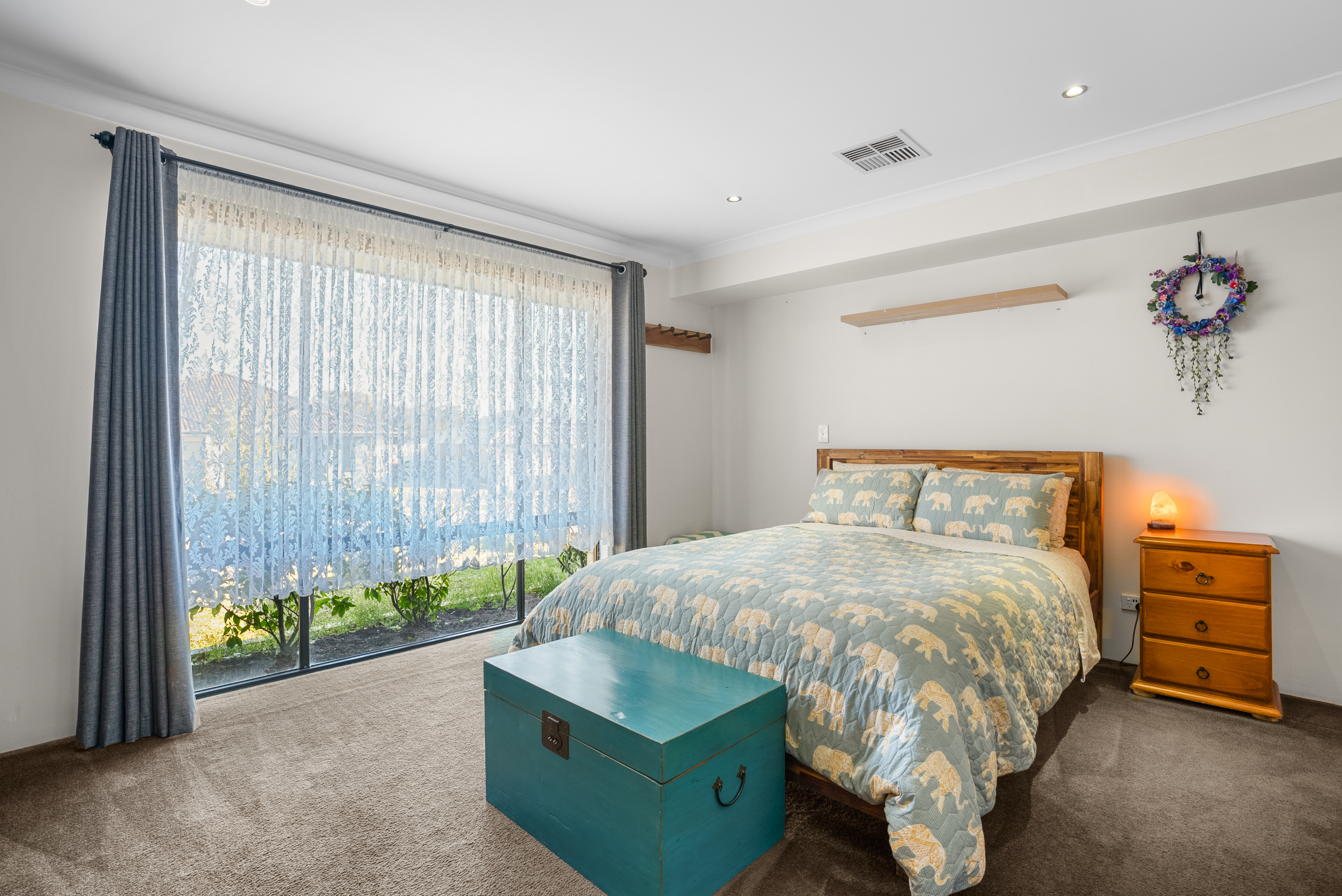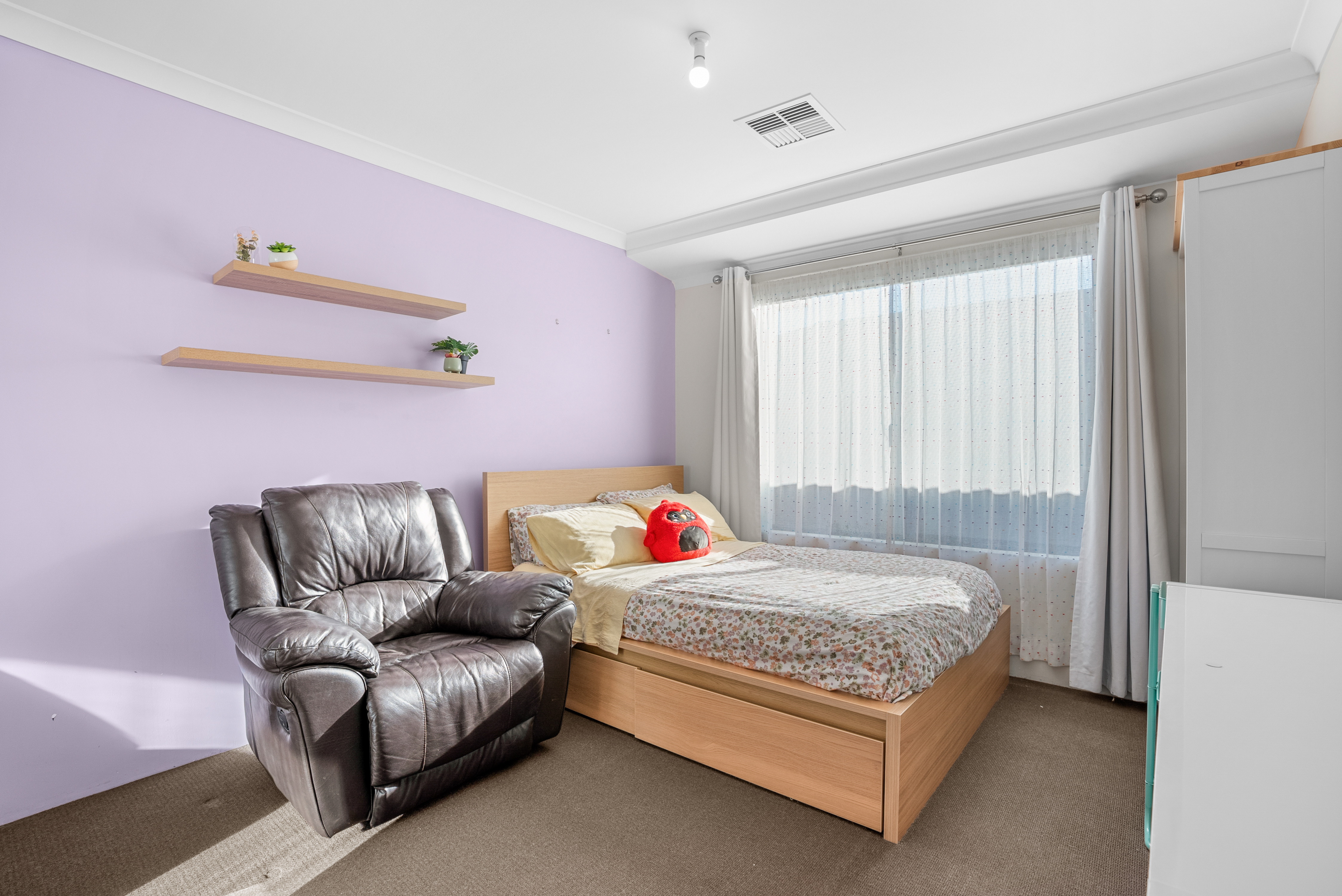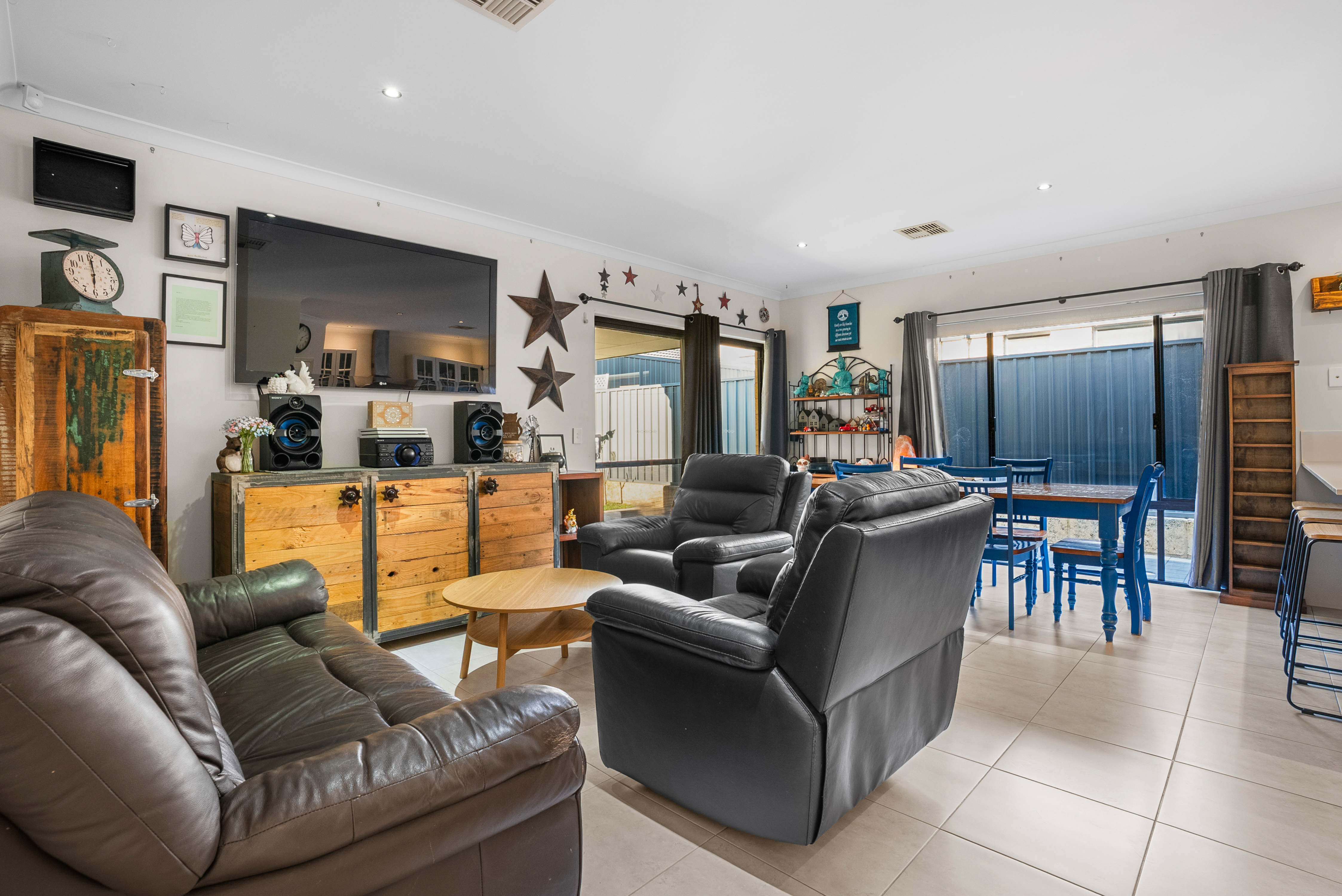 At the heart of the home, the open-plan living area flows seamlessly into the modern kitchen, which comes equipped with quality appliances, ample storage, and plenty of bench space for easy meal preparation. From here, the home extends out to a large alfresco area overlooking a low-maintenance lawn—an inviting space for outdoor gatherings, weekend barbecues, or simply relaxing with family.