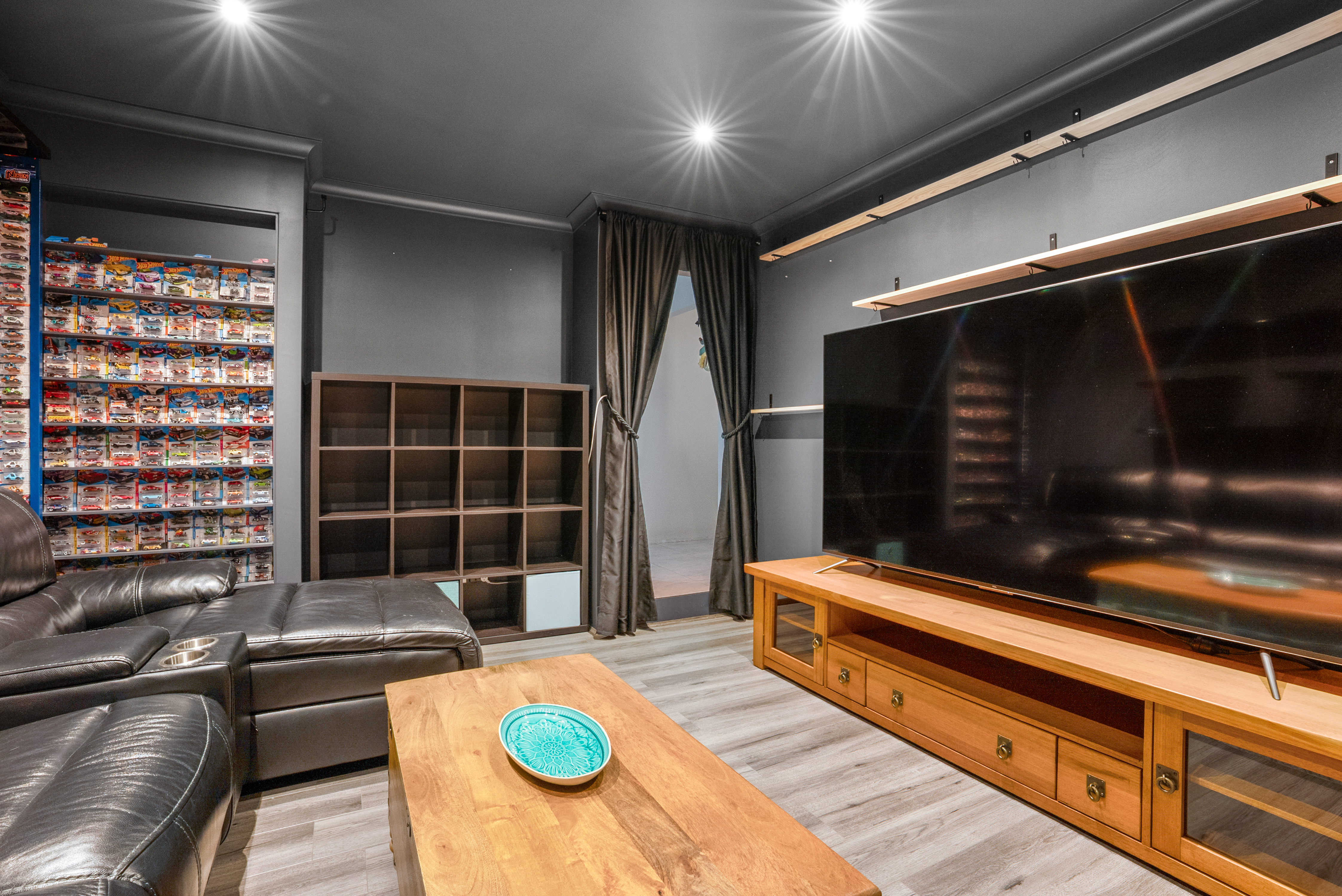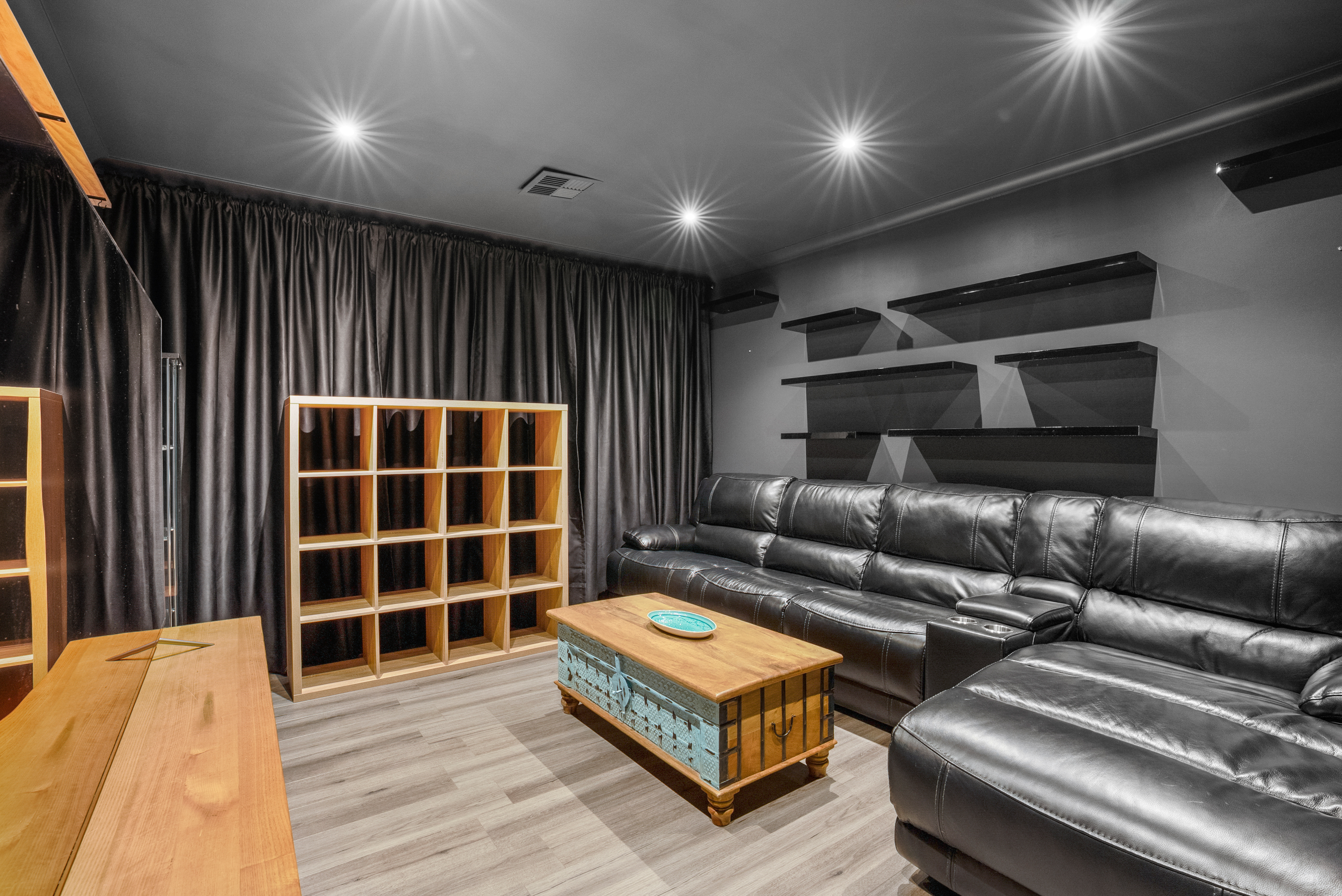 The master suite is a true haven, complete with a stylish ensuite featuring dual vanity and a spacious walk-in wardrobe. The additional bedrooms are equally generous in size, giving everyone their own comfortable space to unwind. A dedicated home theater creates the perfect setting for family movie nights, while an extra multipurpose room offers flexibility as a study, home office, or hobby space.