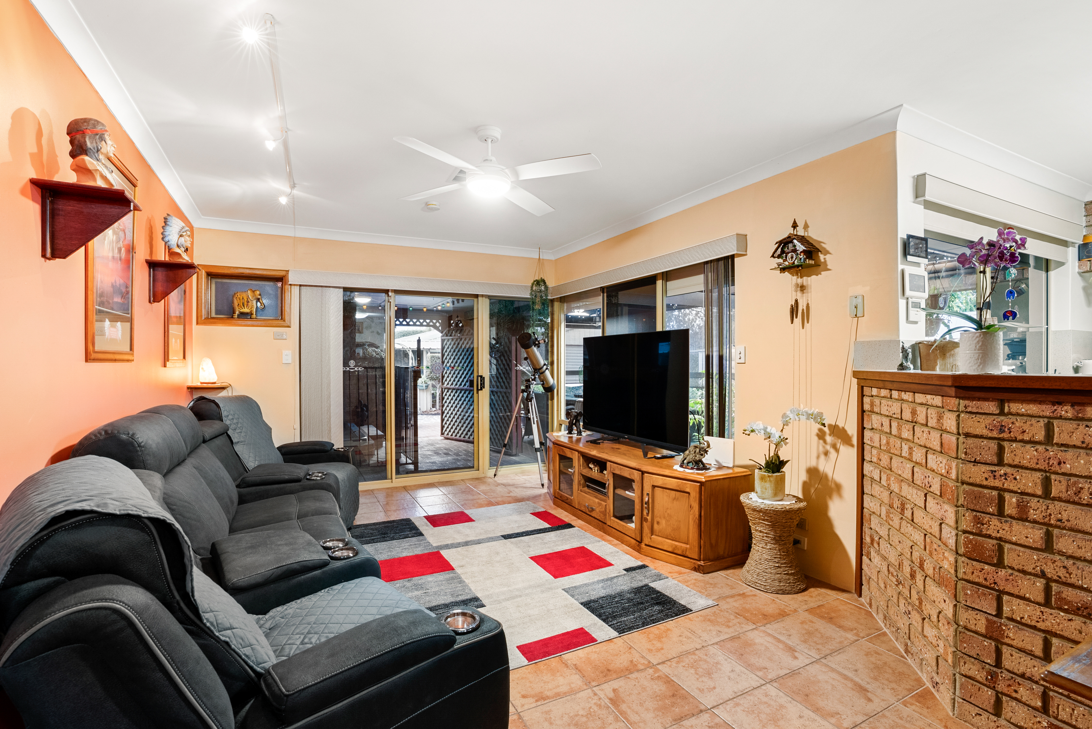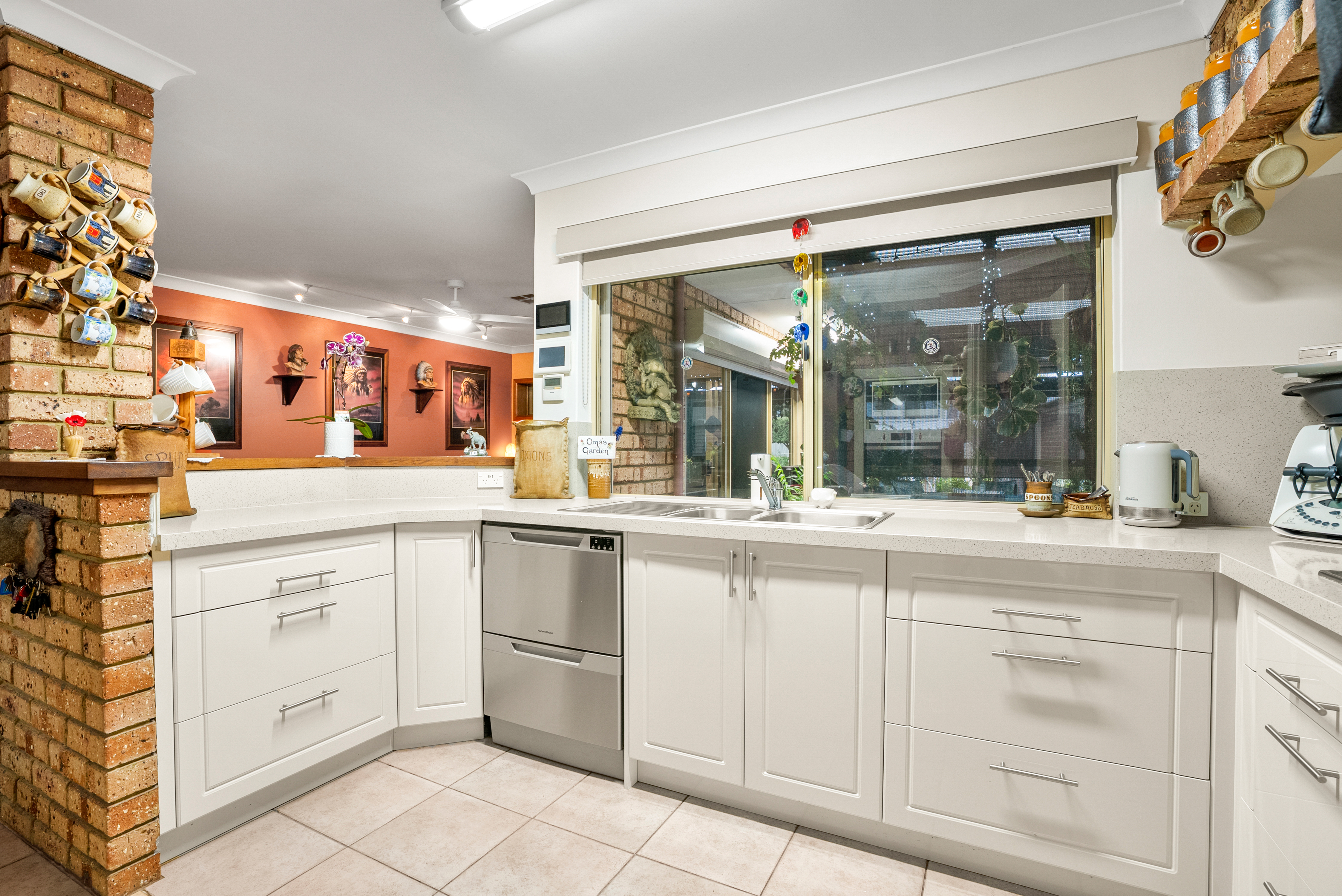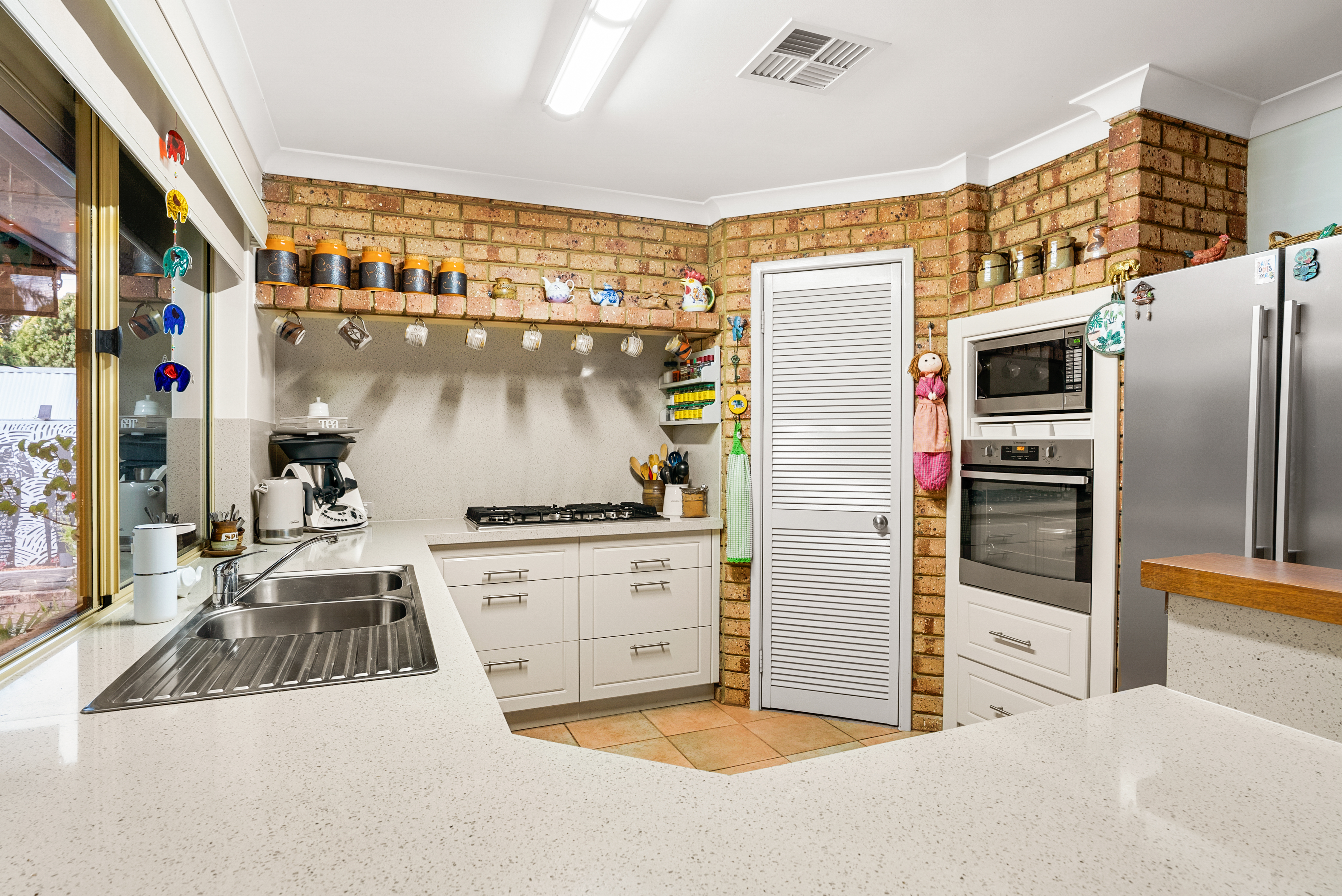 Modern kitchen with quality appliances and direct viewing to the alfresco area—perfect for entertaining