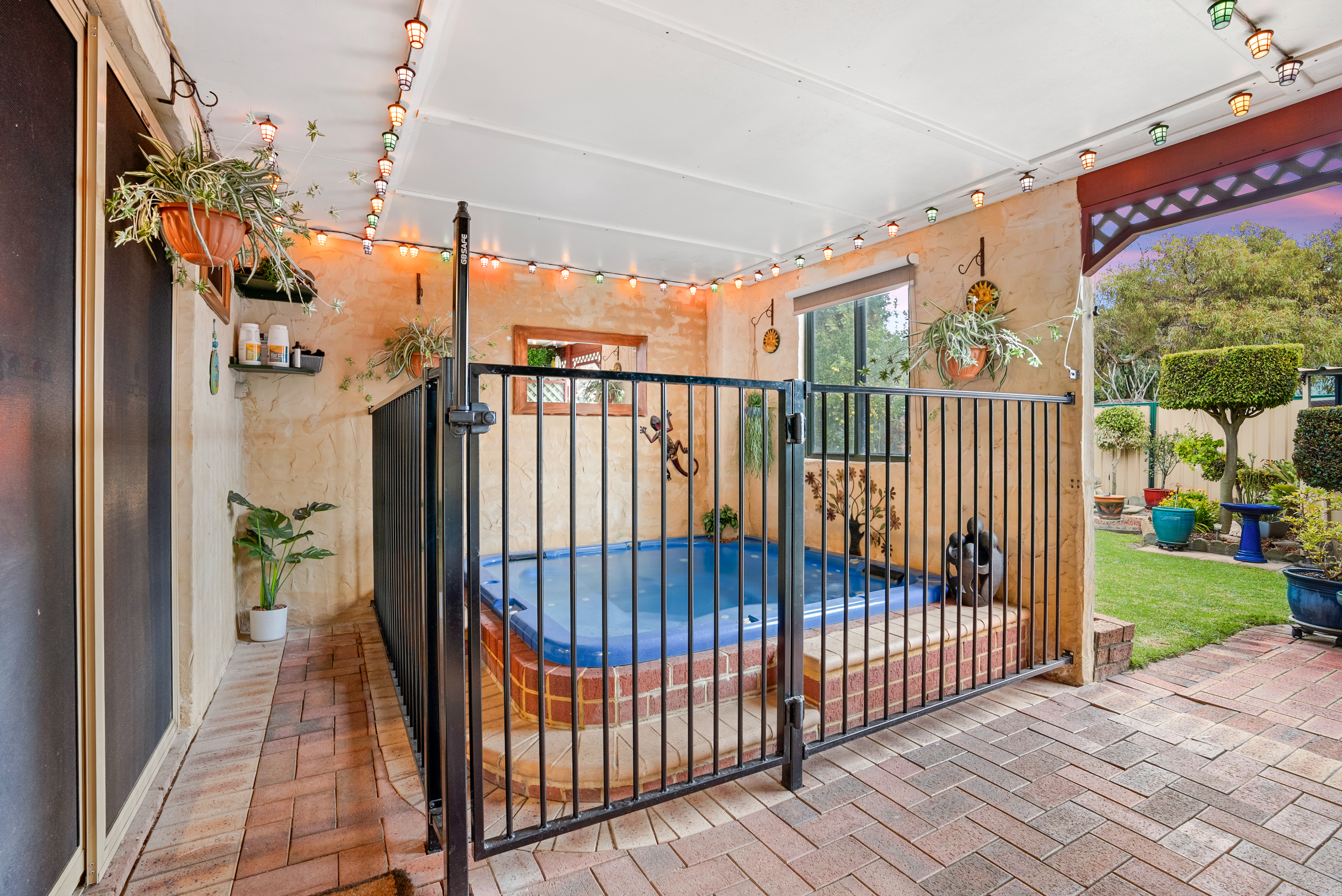 Fenced spa and play pool for relaxed outdoor living