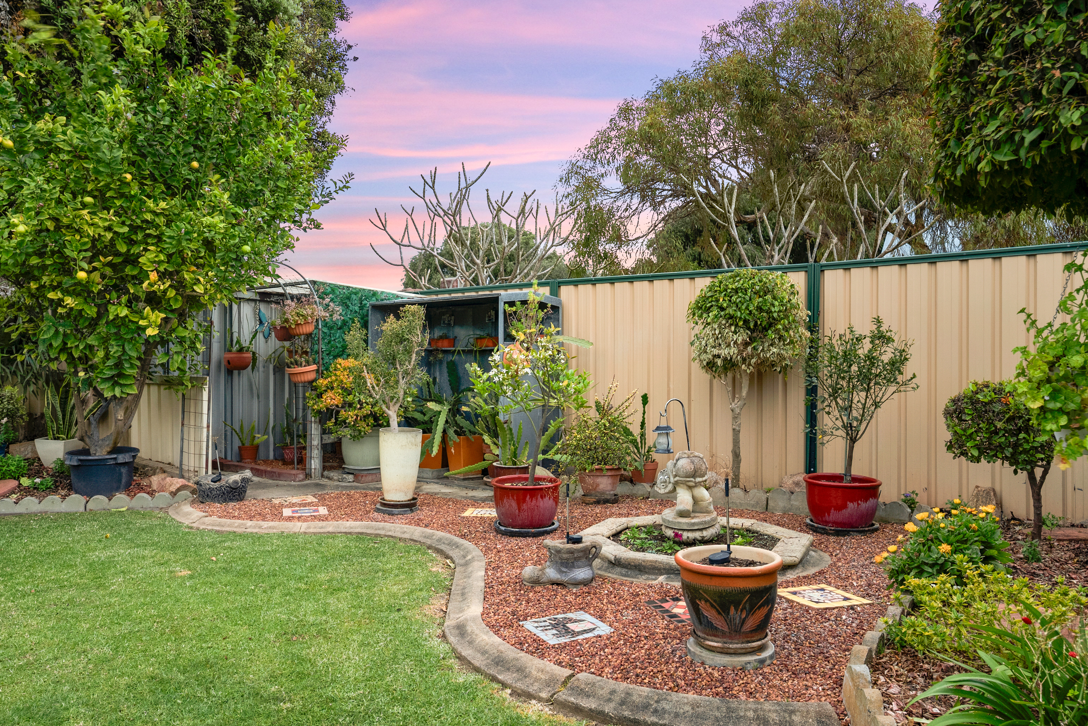 Low-maintenance garden with established plants and a private, leafy outlook