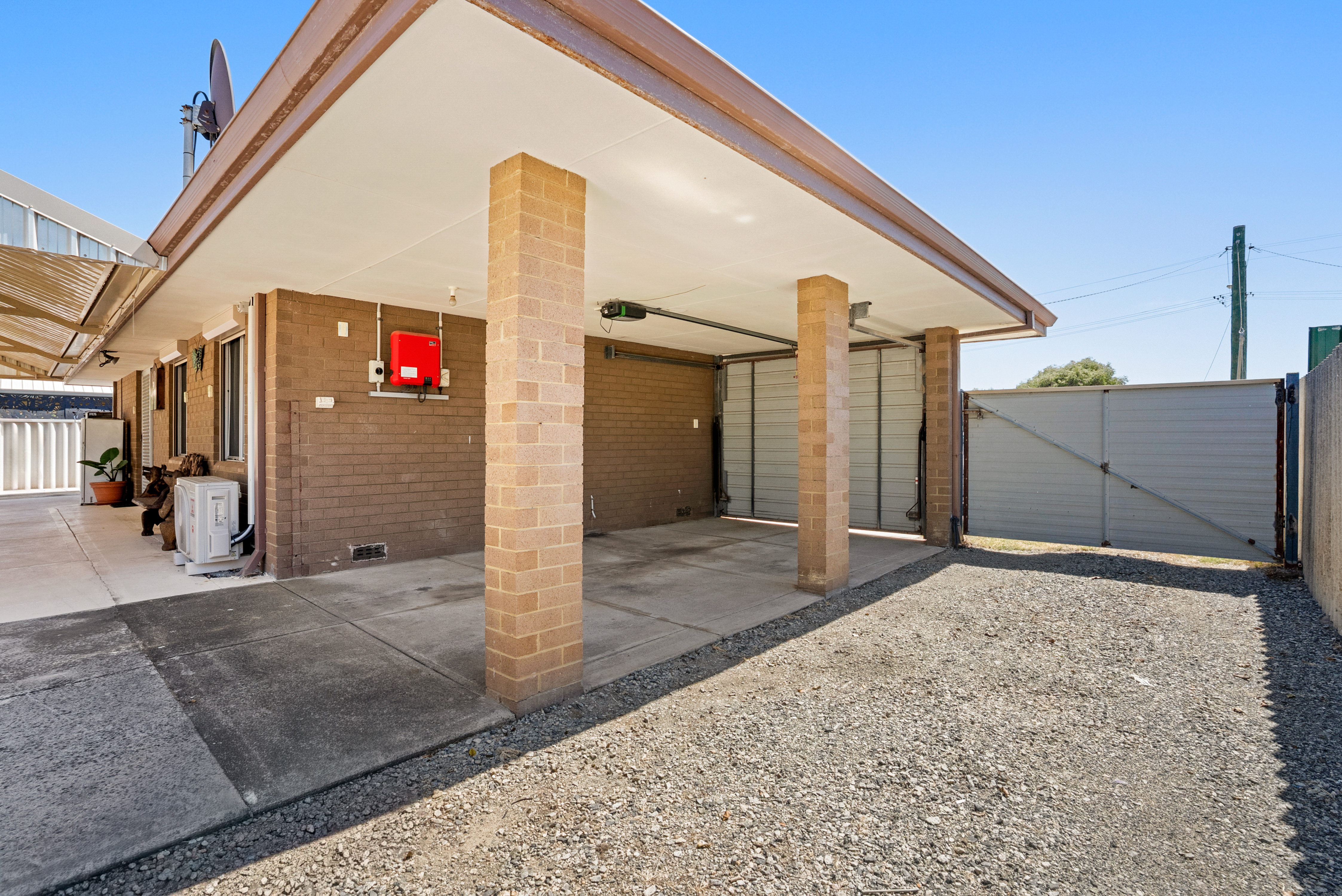 • Side gate with drive-through access offering ample parking for multiple vehicles, a caravan, or a boat