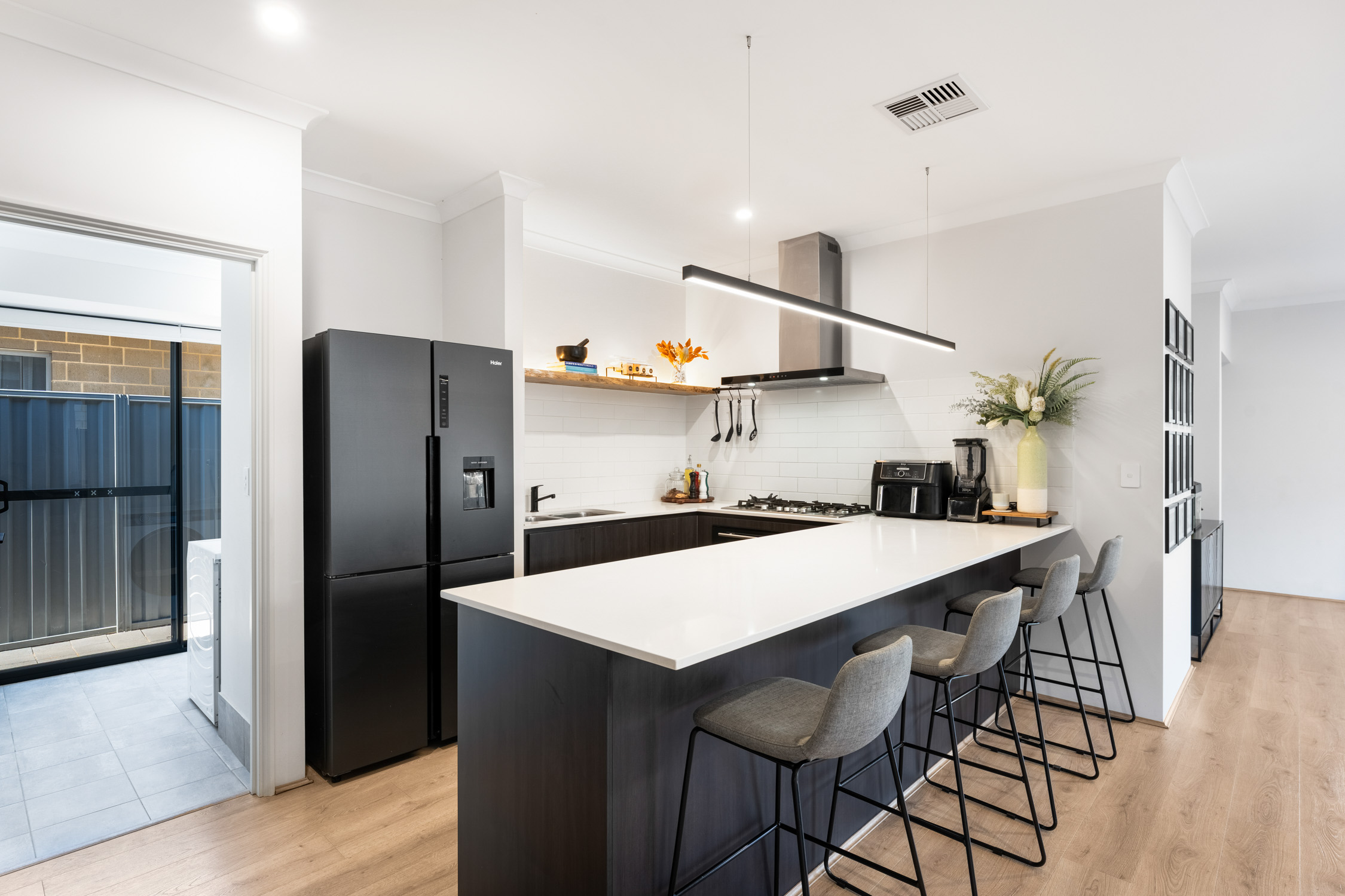 * Contemporary kitchen with ample bench space and storage