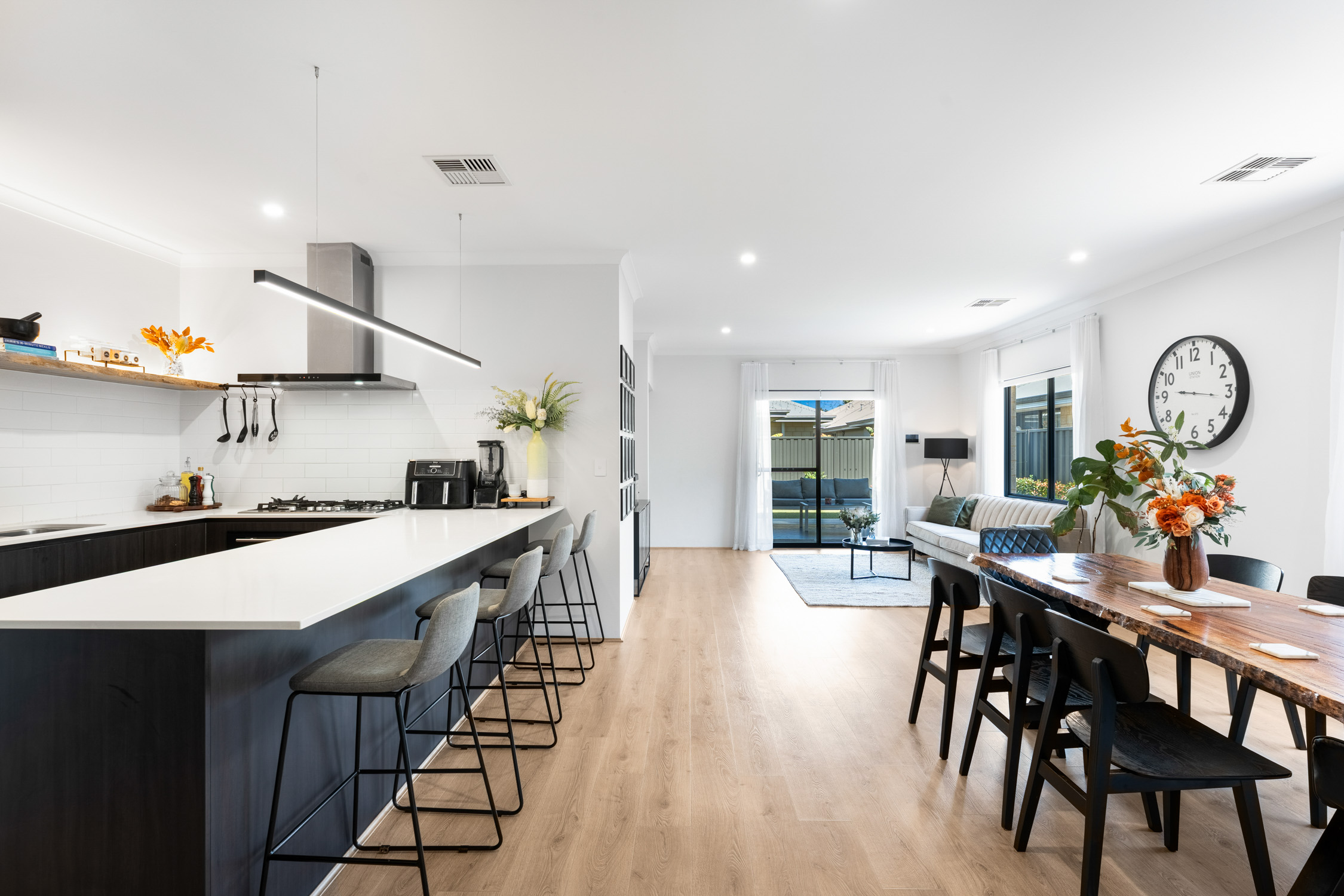 * Light-filled open plan living and dining area