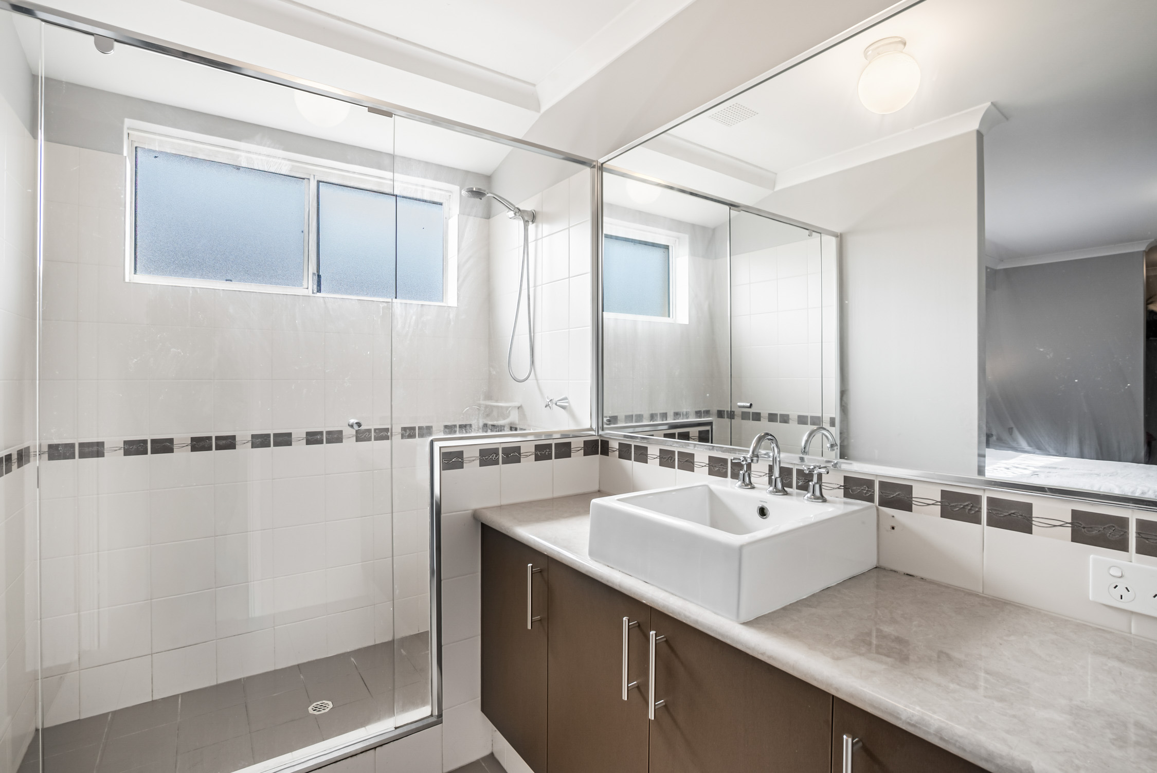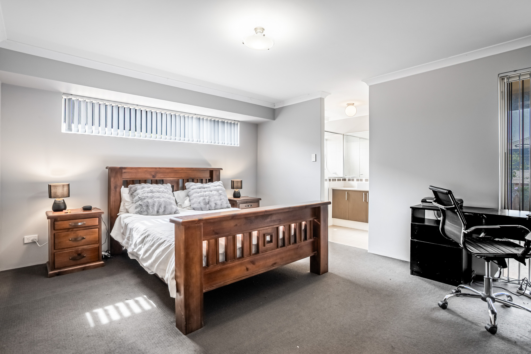 • Master bedroom with private ensuite, raised basin, and built-in study or office nook