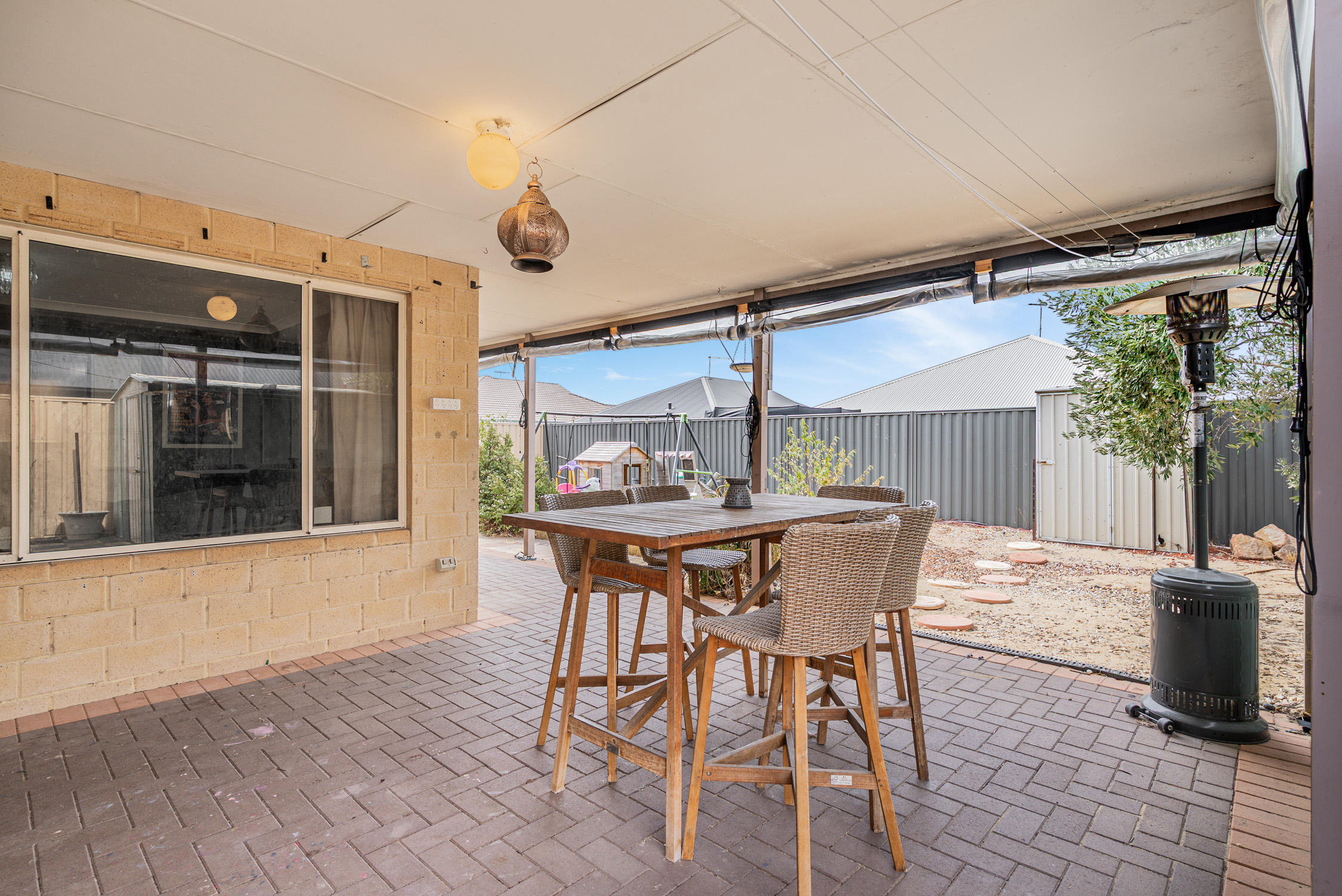 • Under-main-roof alfresco with paving and café blinds for year-round entertaining