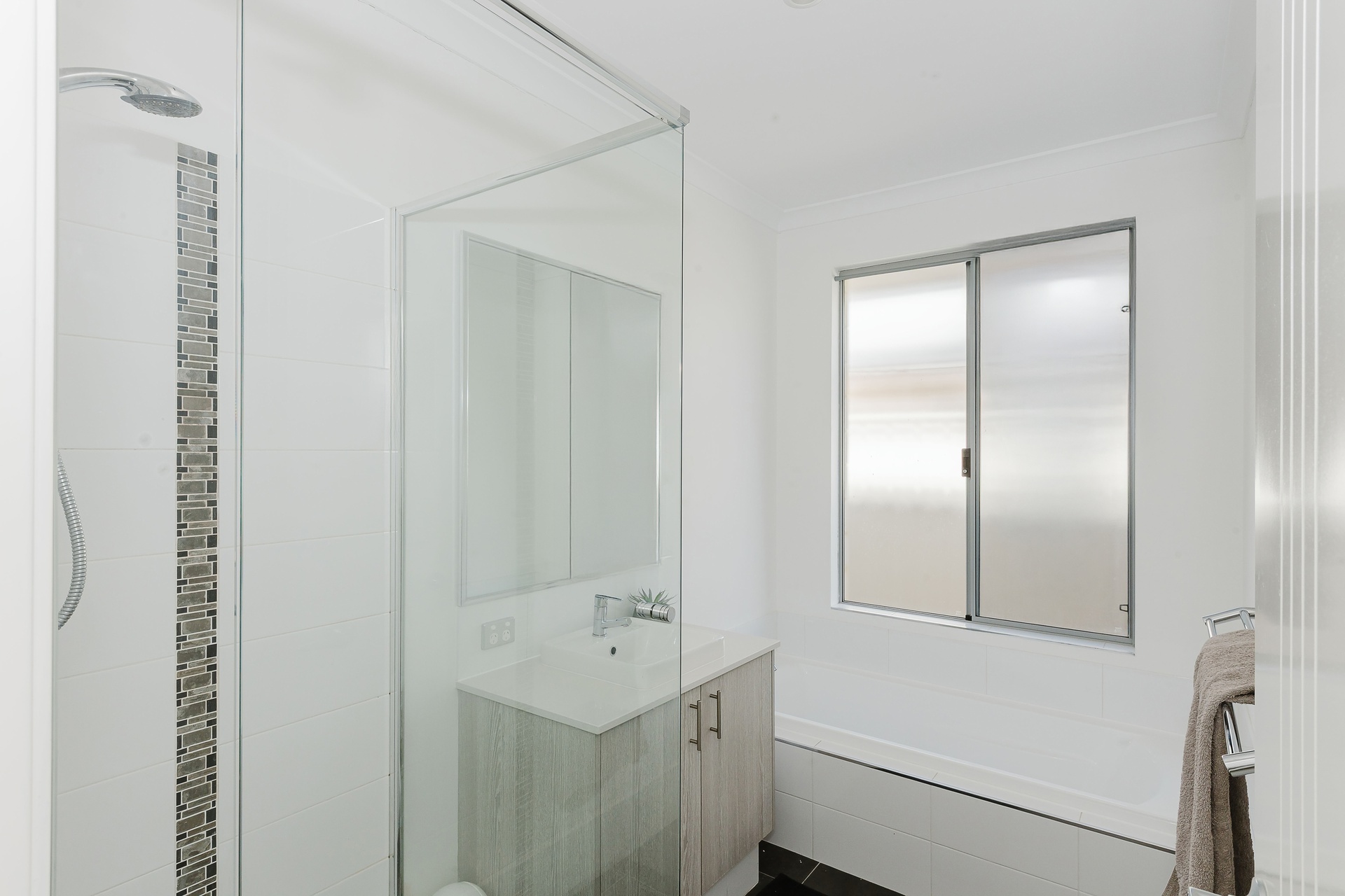 * Contemporary family bathroom with neutral finishes