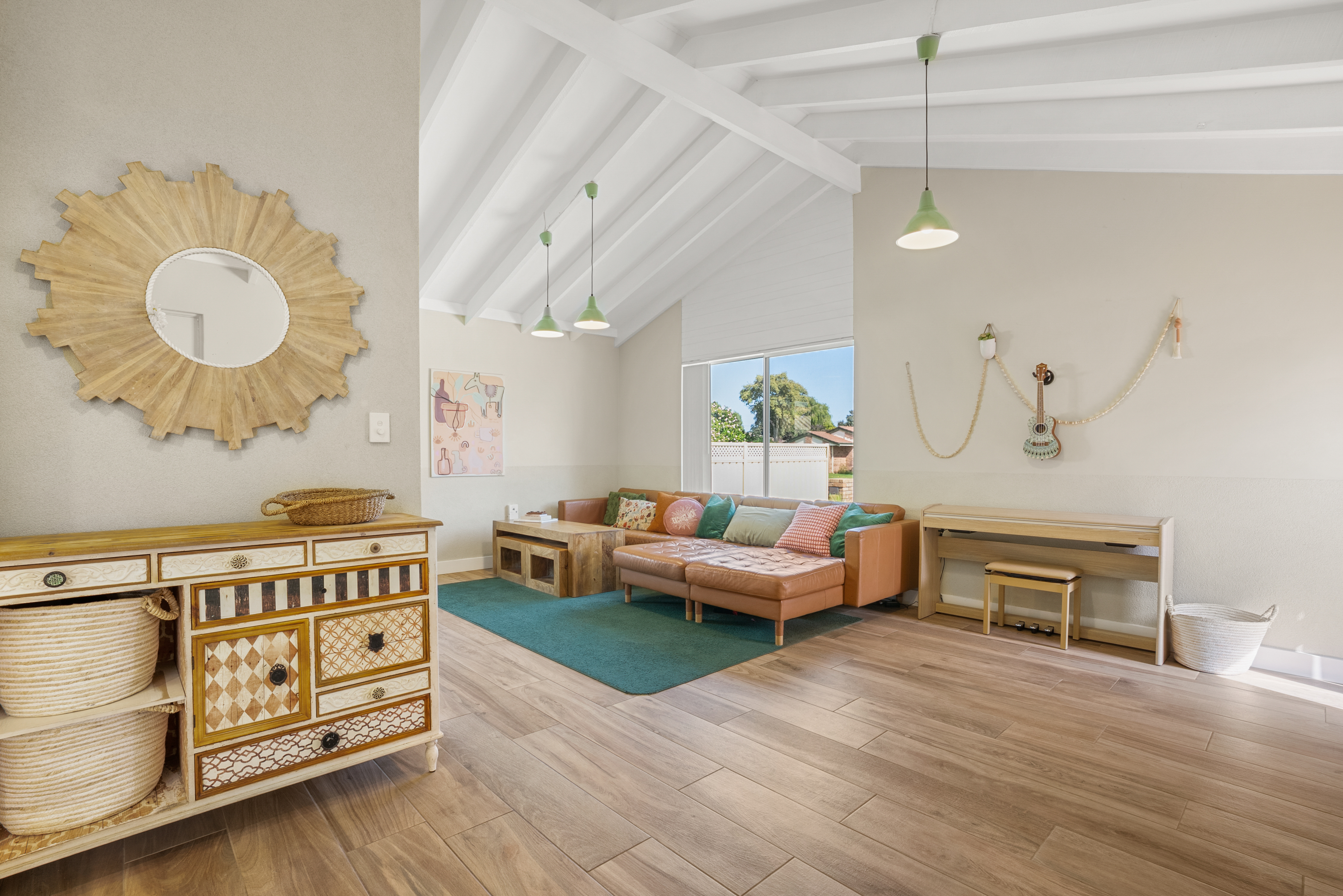 • Spacious lounge area featuring raked ceilings, adding character and a sense of openness